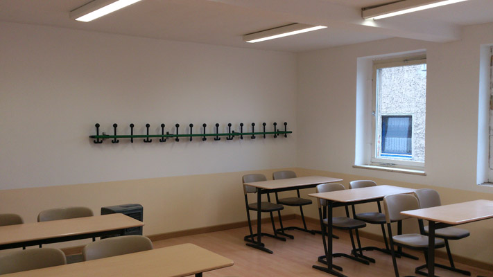 Der Klassenraum ist 6m lang, und 5m breit und bietet damit Platz